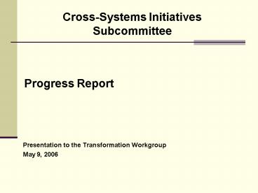 1Cross-Systems Initiatives Subcommittee