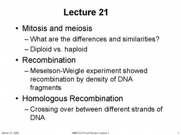 Mitosis and meiosis PowerPoint PPT Presentation