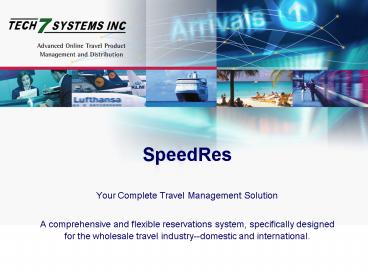 - SpeedRes Web Internet Booking