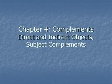 Chapter 4: Complements Direct and Indirect Objects, Subject Complements PowerPoint PPT Presentation