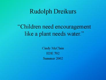 Rudolph Dreikurs PowerPoint PPT Presentation