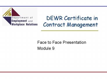 DEWR Certificate in Contract Management PowerPoint PPT Presentation