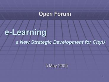 Title: eLearning a New Strategic Development for CityU