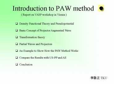 <Notice: Removed> Introduction to PAW method PowerPoint PPT Presentation