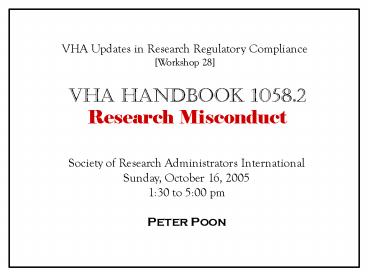 VHA Handbook 1058.2 PowerPoint PPT Presentation