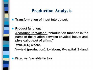 Production Analysis PowerPoint PPT Presentation