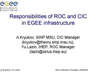 <Notice: Removed> Responsibilities of ROC and CIC in EGEE infrastructure PowerPoint PPT Presentation