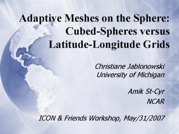 Title: Adaptive Meshes on the Sphere: CubedSpheres versus LatitudeLongitude Grids