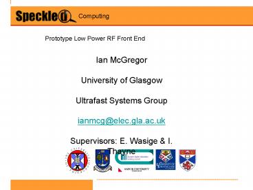 Systems Group ianmcg_at_elec.gla.ac.uk Supervisors