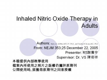 Title: Inhaled Nitric Oxide Therapy in Adults