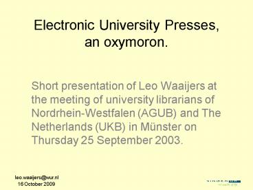 Electronic University Presses, an oxymoron. PowerPoint PPT Presentation