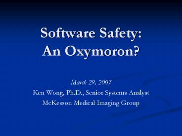 <Notice: Removed> Software Safety: An Oxymoron PowerPoint PPT Presentation