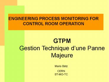 <Notice: Removed> ENGINEERING PROCESS MONITORING FOR CONTROL ROOM OPERATION PowerPoint PPT Presentation