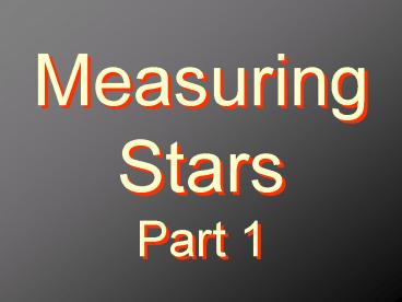 1Measuring StarsPart 1