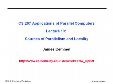 Title: CS 267 Applications of Parallel Computers Lecture 10: Sources of Parallelism and Locality