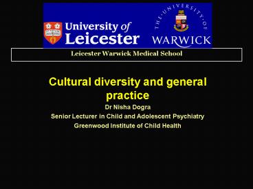Cultural diversity and general practice Dr Nisha