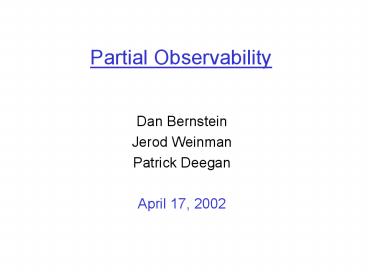 - Policy iteration (Hansen, 1998) for POMDPs uses