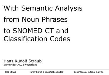 SNOMED CT and Classification Codes Hans Rudolf