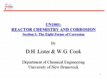 UN1001: REACTOR CHEMISTRY AND CORROSION Section 3: The Eight Forms of Corrosion PowerPoint PPT Presentation