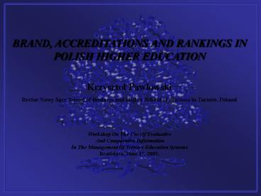 HIGHER EDUCATION Krzysztof Pawlowski Rector