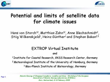 value statistics from satellite soundings. - PhD work done at the Virtual Institute EXTROP