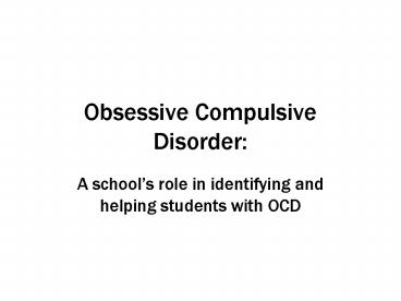 <Notice: Removed> Obsessive Compulsive Disorder: PowerPoint PPT Presentation