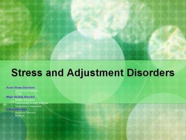 Stress and Adjustment Disorders PowerPoint PPT Presentation