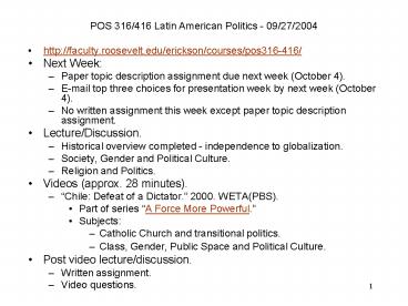 POS 316416 Latin American Politics 09272004 PowerPoint PPT Presentation