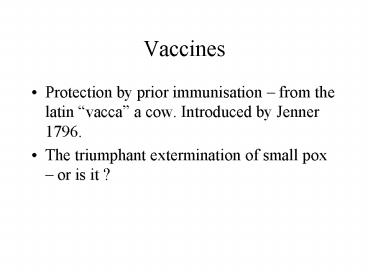 vacca a cow. Introduced by Jenner 1796. - The triumphant extermination of small pox or is