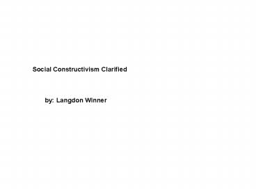 Title: Social Constructivism Clarified
