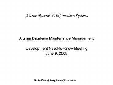Alumni Records PowerPoint PPT Presentation