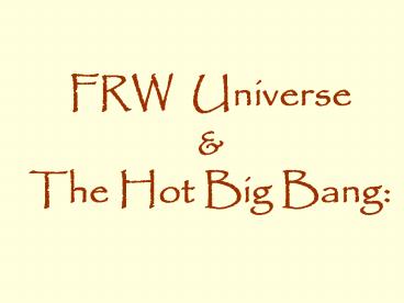 1FRW Universe The Hot Big Bang