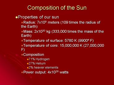 • Temperature of core 15,000,000 K (27,000,000 F)