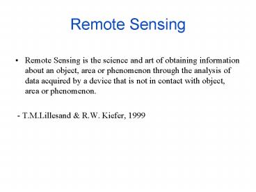 area or phenomenon. - - T.M.Lillesand R.W. Kiefer, 1999