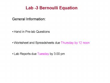 Lab 3 Bernoulli Equation PowerPoint PPT Presentation