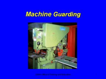 working, must be safeguarded - A good rule to remember is Any machine part,