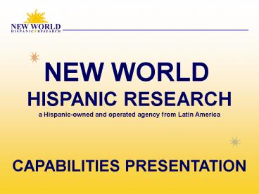 1NEW WORLD HISPANIC RESEARCH a Hispanic-owned and