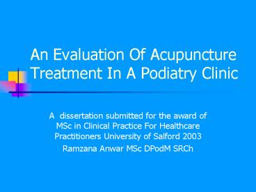 Title: An Evaluation Of Acupuncture Treatment In A Podiatry Clinic