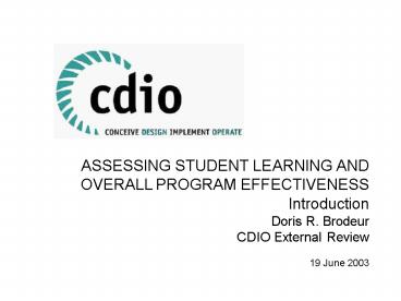 EFFECTIVENESS Introduction Doris R. Brodeur CDIO