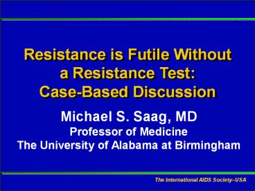 Title: Resistance is Futile Without a Resistance Test: Case-Based Discussion
