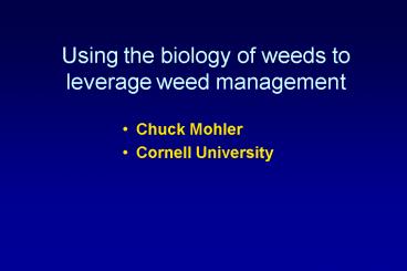 Title: Using the biology of weeds to leverage weed management