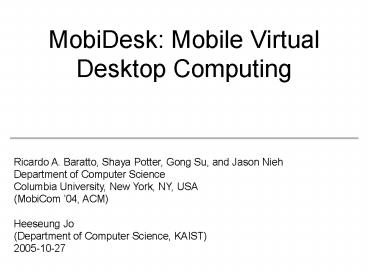 MobiDesk: Mobile Virtual Desktop Computing PowerPoint PPT Presentation