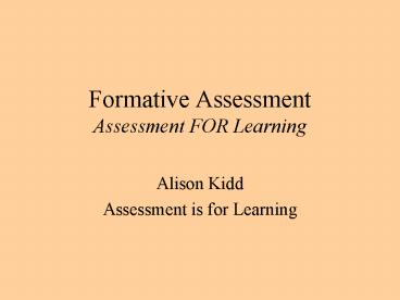 Title: Formative Assessment Assessment FOR Learning