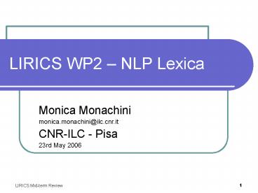 lexicons and the extensions for NLP lexicons - Barcelona, 21-22.6.2005. LIRICS Industrial