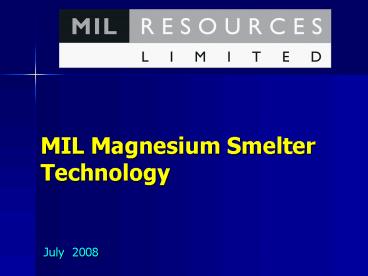 - Construct in 2 stages (50,000 tpy Mg metal)