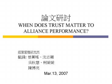 92. Trust and alliance performance(1)
