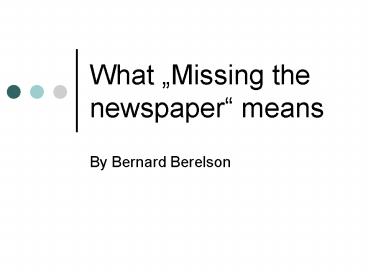 What Missing the newspaper means PowerPoint PPT Presentation