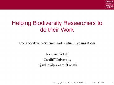 1Helping Biodiversity Researchers to do their Work