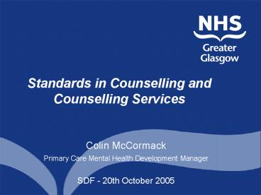 Standards in Counselling and Counselling Services PowerPoint PPT Presentation