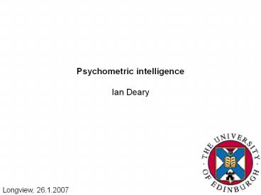 <Notice: Removed> Psychometric intelligence Ian Deary PowerPoint PPT Presentation